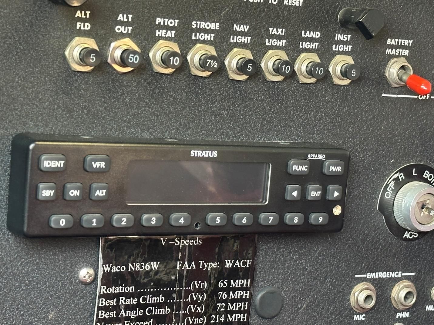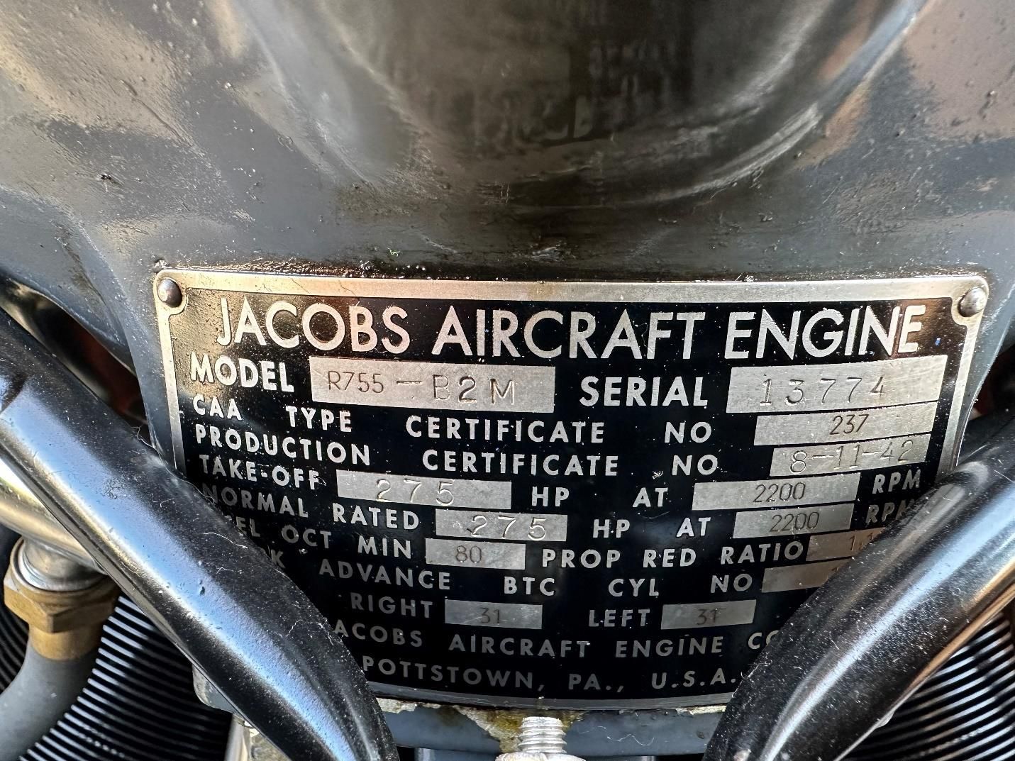 524.5 Total Time, 326.7 SMOH & ‘0’ STOH on Jacobs R-755B2M S.N. 13774, 258.5 Since New Prop. August 22, 2023 Annual at Waco Factory (Centennial Aircraft)in Battle Creek. 91.413 Transponder Cert complied with 7-26-21. Useful load 791.4. Date of Manufacture 8/14/98