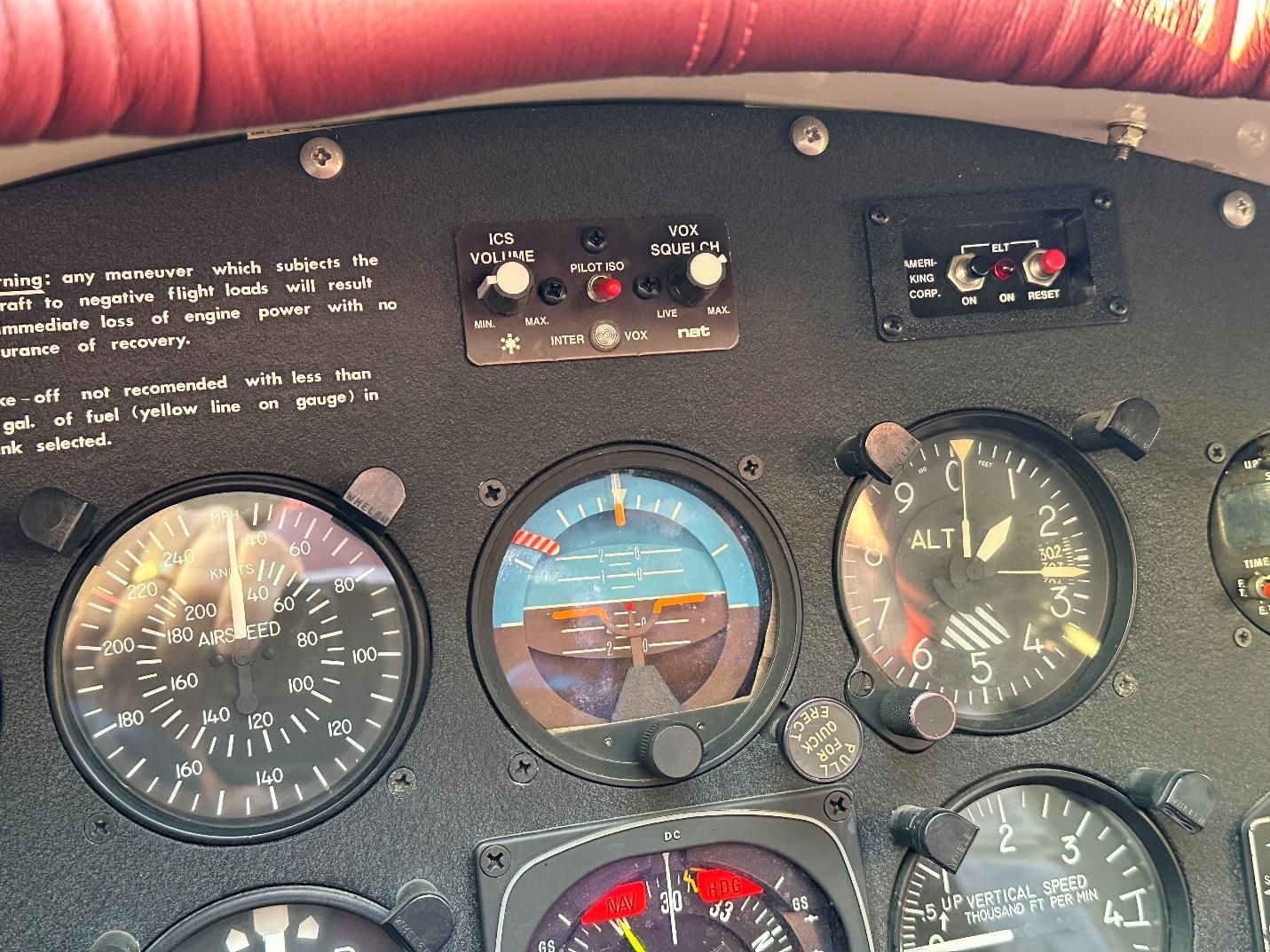 72 Gallon Fuel, MT Wood Prop, Cockpit cover. Wing tip Strobes, Air Wolf Oil Filter, Davtron Clock, G Meter, Landing Lights. Dual Flight Controls, Dual Brakes. 2 Seat bench forward cockpit. Davtron Volt/Ammeter, Alcor EGT, Pitot heat.